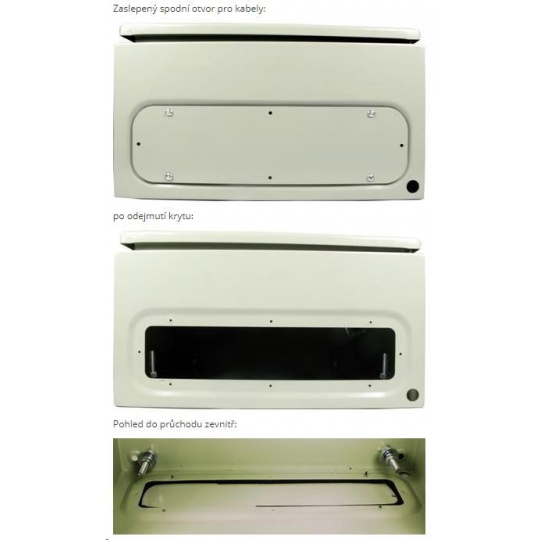 - v dolnej časti rozvádzača je umiestnený priechod pre kabeláž o veľkosti 303 x 113 mm s odnímateľným krytom