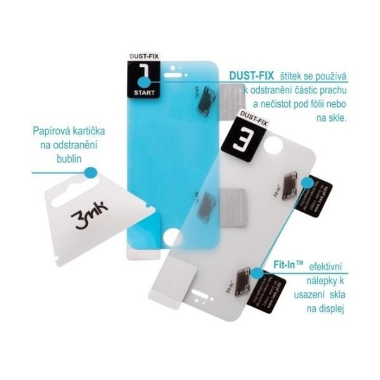 - Sada obsahuje: FlexibleGlass, kartičku na rozbitie bublín, polohovacie samolepky Fit-In™ a samolepky Dust-Fix™, čistiaci a suchý handriček