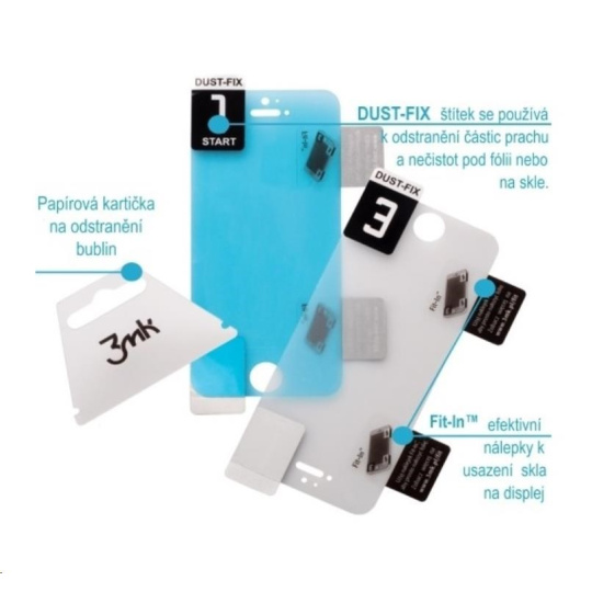- Súprava obsahuje: FlexibleGlass, kartičku na rozleptanie bublín, polohovacie samolepky Fit-In™ a samolepky Dust-Fix™, čistiaci a suchý handriček