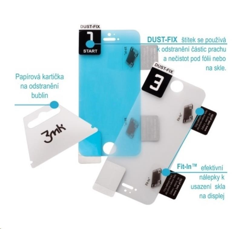 - Súprava obsahuje: FlexibleGlass, kartičku na rozleptanie bublín, polohovacie samolepky Fit-In™ a samolepky Dust-Fix™, čistiaci a suchý handriček
