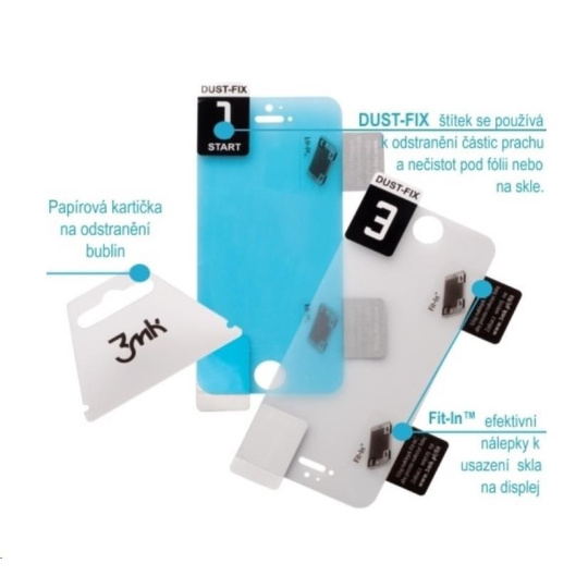 - Súprava obsahuje: FlexibleGlass, kartičku na rozotretie bublín, polohovacie samolepky Fit-In™ a samolepky Dust-Fix™, čistiaci a suchý hadrík