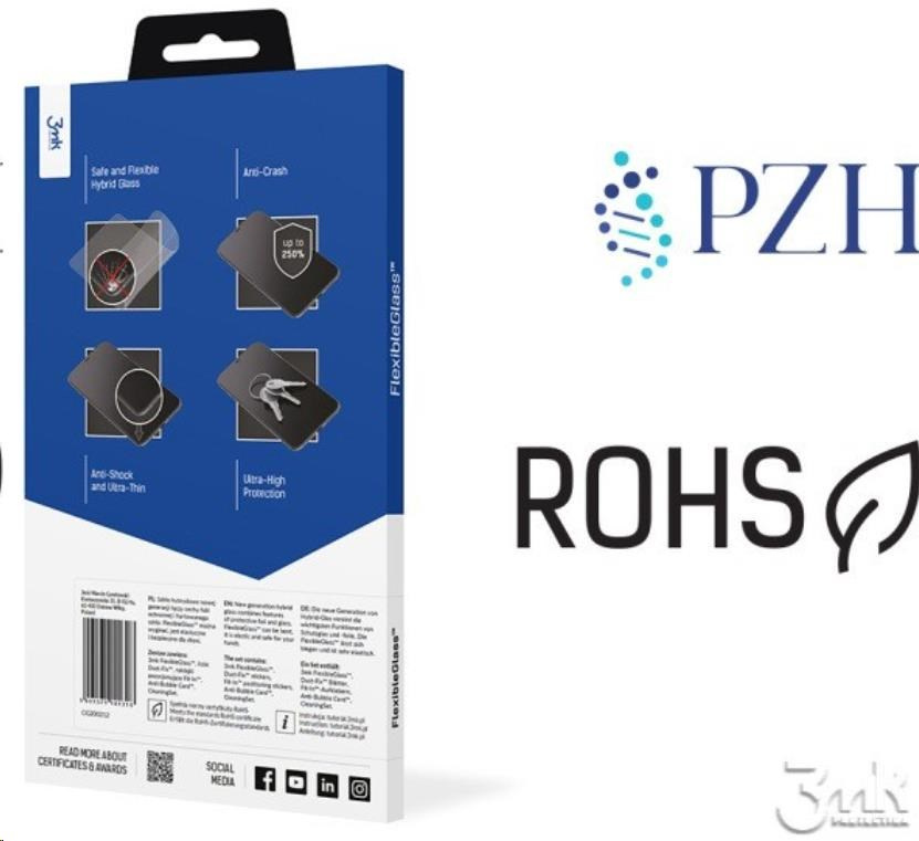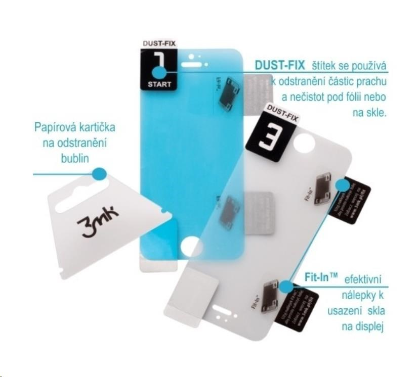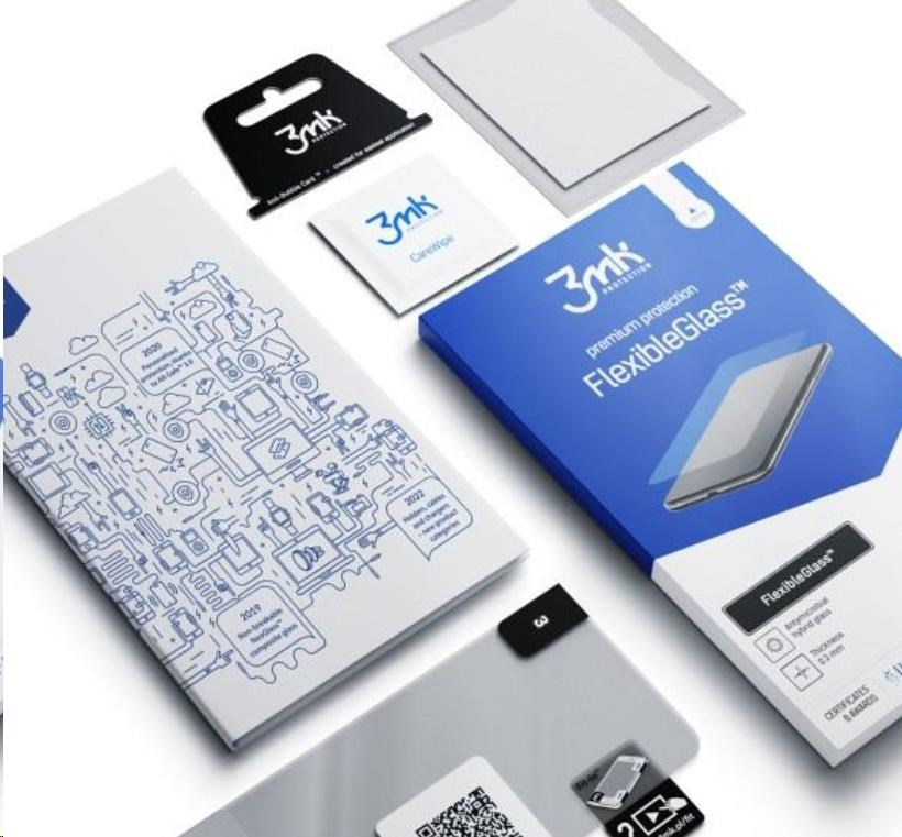 - Súprava obsahuje: FlexibleGlass, kartičku na rozotretie bublín, polohovacie samolepky Fit-In™ a samolepky Dust-Fix™, čistiaci a suchý hadrík