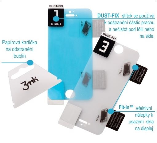 - Sada obsahuje: FlexibleGlass, kartičku na rozotrenie bublín, polohovacie samolepky Fit-In™ a samolepky Dust-Fix™, čistiaci a suchý handriček