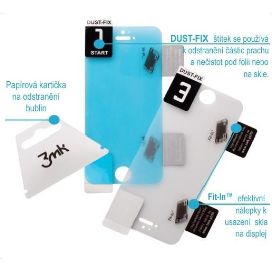 - Sada obsahuje: FlexibleGlass, kartičku na rozotretie bublín, polohovacie samolepky Fit-In™ a samolepky Dust-Fix™, čistiaci a suchý handriček