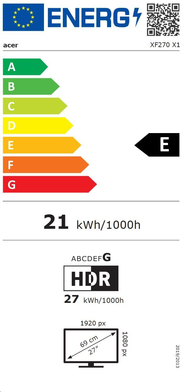 ACER LCD XF270X1biiph,27" FHD IPS LED,250nits,178/178,4ms,HDMI,DP,VESA,Black