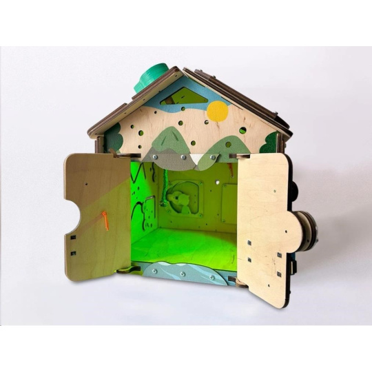 Po zdolaní rôznych otváracích mechanizmov sa deťom podarí otvoriť dvierka do activity board domčeka. V útulnom domčeku môžu ubytovať plyšové zvieratká alebo obľúbené bábiky. Pri otváraní a zatváraní dvierok deti potrénujú jemnú motoriku, koordináciu očí a rúk i logické myslenie.