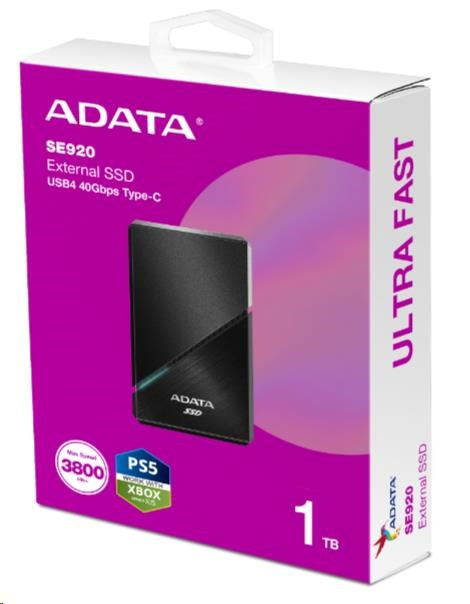 ADATA Externí SSD 1TB SE920, USB 4 Type-C, R:3800/W:3700MB/s, černá
