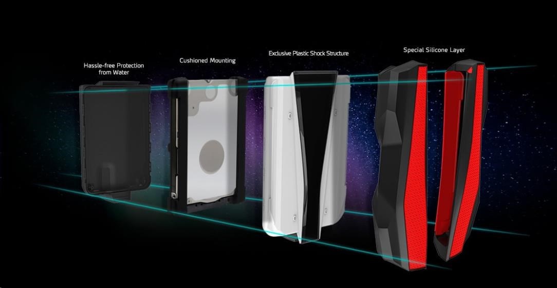 Predstavujeme prvý odolný externý pevný disk na svete s osvetlením RGB. S HD770G môžete nielen ukladať všetky svoje hry a dáta, ale aj ich ukladať s eleganciou. HD770G navyše prekračuje normu IP68, čo znamená, že je vodotesný a prachotesný a vďaka robustnej trojvrstvovej konštrukcii je odolný voči nárazom. Čo viac si môžete priať!