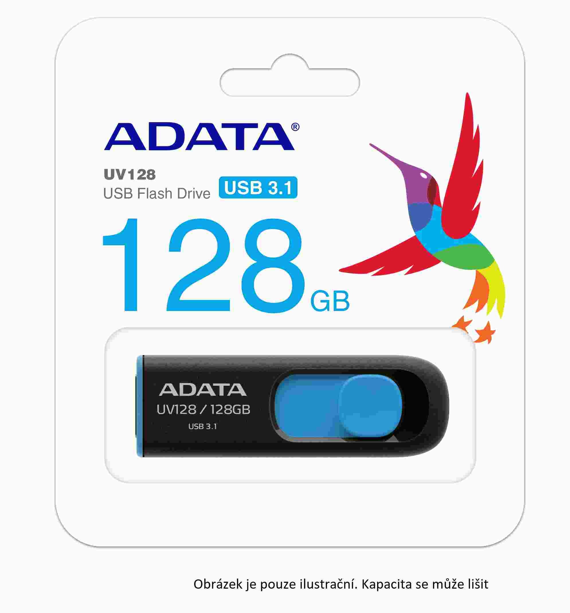 ADATA Flash disk 32GB UV128, USB 3.1 Dash Drive (R:40/W:25 MB/s) čierna/modrá