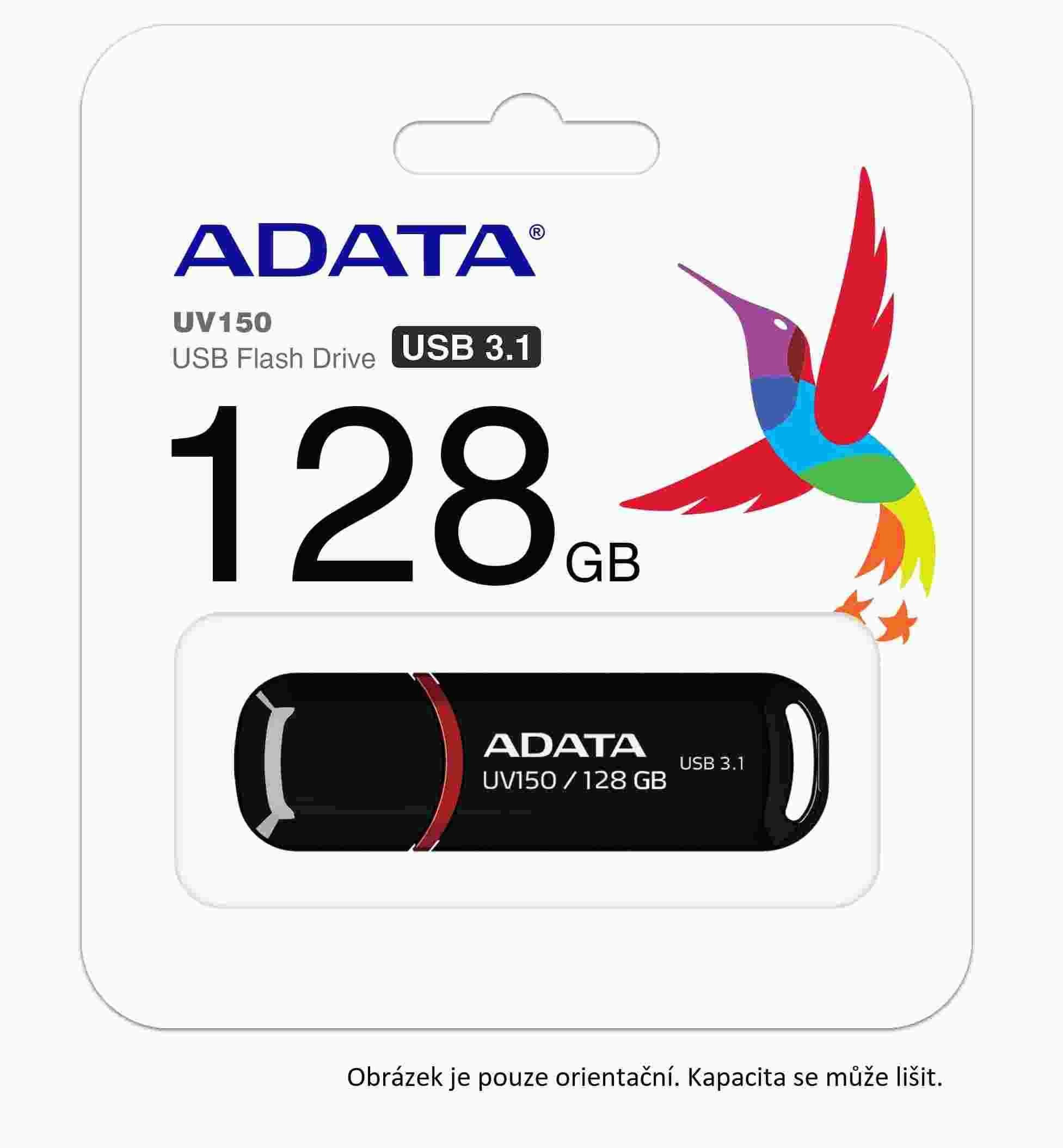 ADATA Flash Disk 64GB UV150, USB 3.1 disk Dash Drive (R:90/W:20 MB/s) čierny