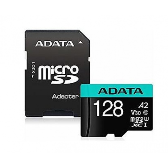 ADATA MicroSDXC karta 128GB Premier Pro UHS-I V30S (R:100/W:80 MB/s) + SD adaptér