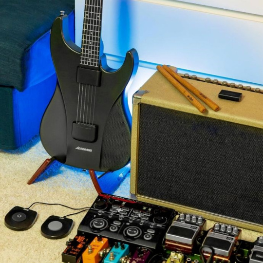 AeroBand AeroGuitar nie je len cestovná gitara; je to revolúcia v tom, ako a kde môžete hrať. Jej ľahká, ale odolná konštrukcia je navrhnutá tak, aby odolala nástrahám častého cestovania, a vďaka dlhej výdrži batérie až 10 hodín je ideálna na vystúpenia v exteriéri. Vstavaný 6,35 mm jack umožňuje pripojenie k rôznym zosilňovačom a reproduktorom, čo vám dáva slobodu hrať kedykoľvek a kdekoľvek. Hudobníkom, ktorí hľadajú kombináciu tradície, najmodernejšej technológie a bezkonkurenčného pohodlia, ponúka AeroGuitar jedinečný a výnimočný zážitok z hry na gitaru.