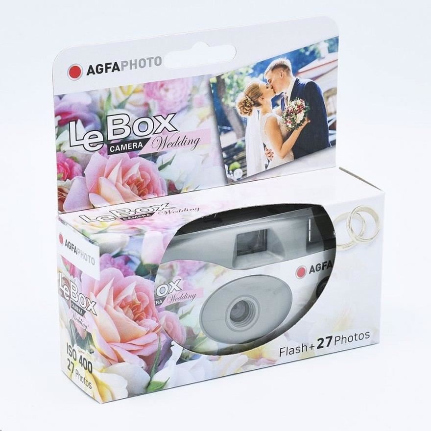 AfgaPhoto LeBox Wedding Flash je ľahko použiteľný jednorazový fotoaparát, ktorý sa dodáva s farebným filmom pre 27 snímok. Kamera má grafický dizajn na mieru, ktorý je špeciálne prispôsobený pre svadby. Má tiež vstavaný blesk, ktorý je možné zapínať a vypínať pomocou malého vypínača na prednej strane fotoaparátu. S citlivosťou filmu ISO 400 je fotoaparát vhodný na fotografovanie v interiéri aj exteriéri. Farebný film umožňuje nasnímať 27 fotografií a musí byť vyvinutý pomocou štandardného farebného chemického procesu C-41. Na vývoj môžete použiť takmer akékoľvek fotolaboratórium..