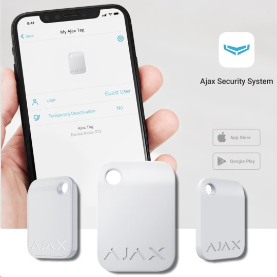 Ajax Tag je šifrovaný bezkontaktný tag (prívesok) na prístup k ovládaniu stavu zabezpečovacieho systému Ajax.