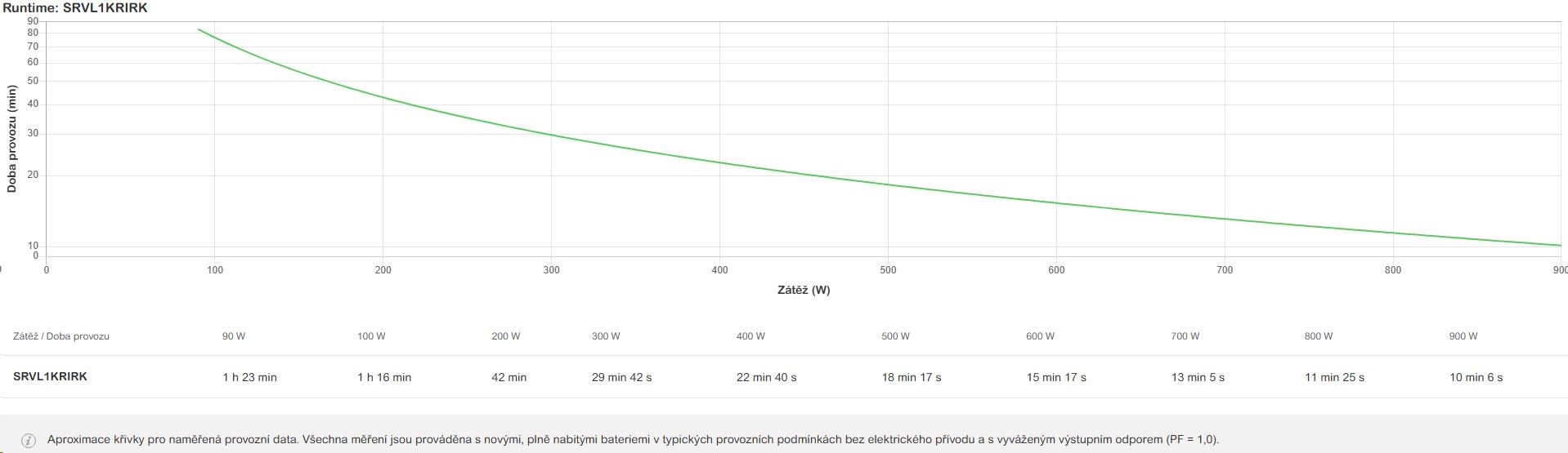 | Doba provozu pro zátěž WMin.–max.: 90-900 W | 10min 6s |