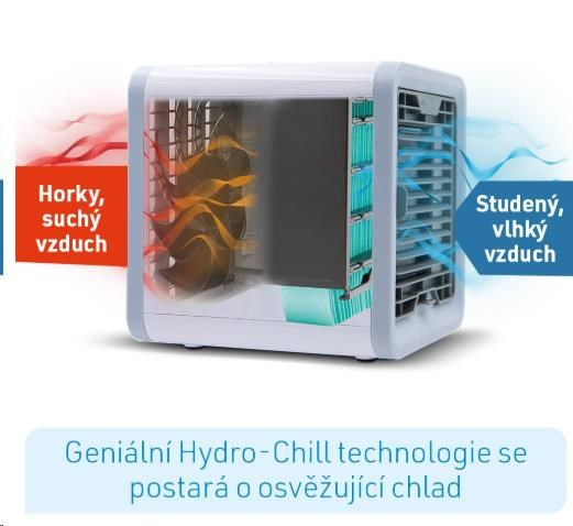 Pomocou svojej Hydro-Chill technológie sa prístroj postará o príjemný chlad vo vašom bezprostrednom okolí a to pomocou odparovania čistej vody. Chladný, vlhký vzduch sa rozptýli rovnomerne a prirodzene, inak ako u bežných klimatizačných zariadení využívajúcich chemické prostriedky a zbytočne zaťažujú vaše telo.