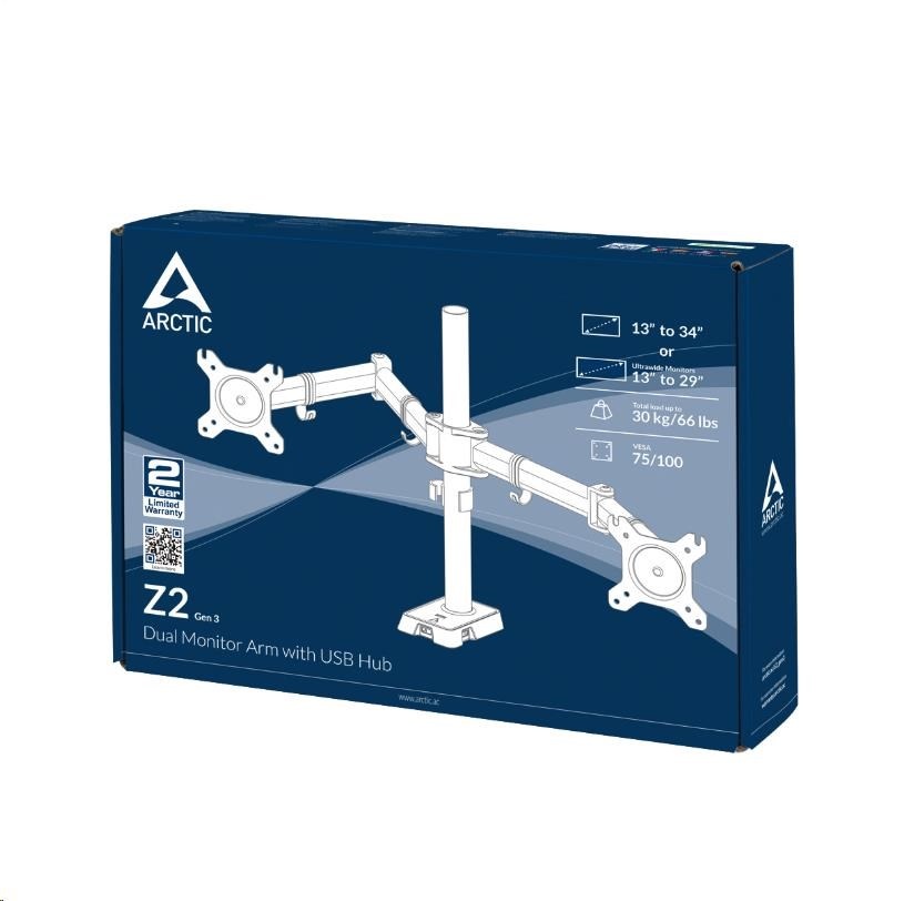 Rameno monitora ARCTIC Z2 bez problémov podporuje najnovšie ultraširokouhlé monitory (do 29 palcov).