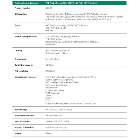 Aruba 2930F 48G PoE+ 4SFP+ Swch RENEW JL256A.