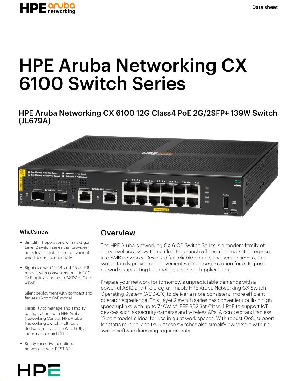 Aruba 6100 12G Class4 PoE 2G/2SFP+ 139W Switch JL679A RENEW.