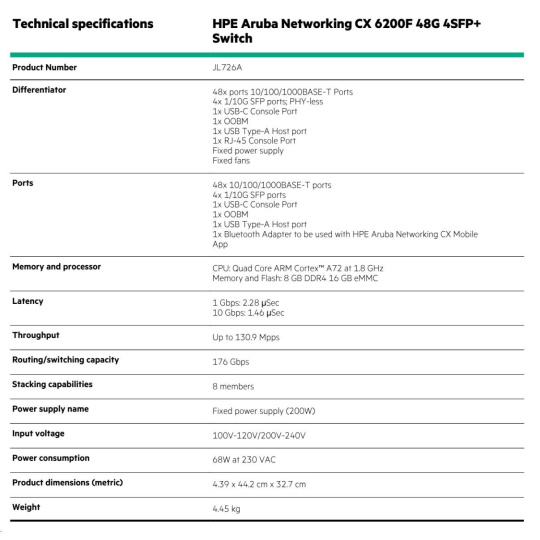 HPE Aruba Networking CX 6200F 48G 4SFP+ Switch (JL726A)