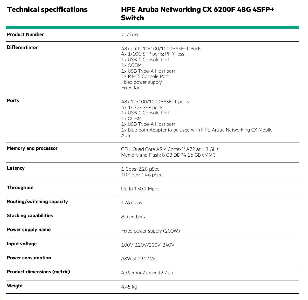 HPE Aruba Networking CX 6200F 48G 4SFP+ Switch (JL726A)