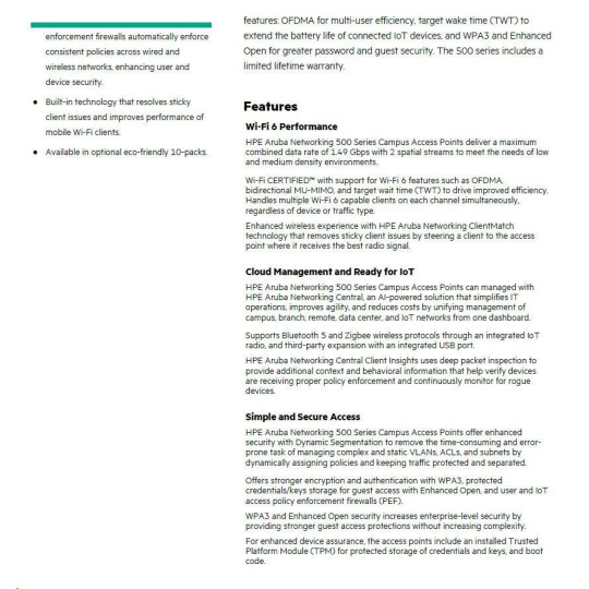 Odkaz na web výrobcu: https://www.arubanetworks.com/assets/ds/DS_AP500Series.pdf