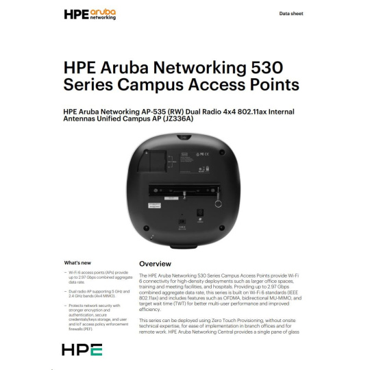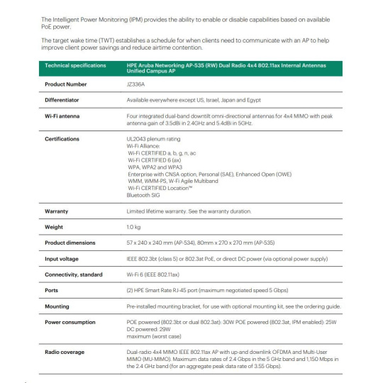 Aruba AP-535 (RW) Dual Radio 4x4:4 802.11ax Internal Antennas Unified Campus AP RENEW JZ336A