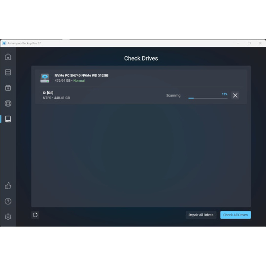 Záloha je tak bezpečná, jak bezpečný je pevný disk, na kterém je uložena! Proto Ashampoo® Backup Pro během zálohování sleduje parametry SMART vašeho pevného disku, aby odhalil budoucí problémy ještě předtím, než nastanou! Díky tomu máte čas reagovat a zabránit ztrátě dat. Program také nabízí dodatečnou kontrolu disku/oddílů, která analyzuje a opravuje jednotlivé sektory. Ať už se jedná o interní nebo externí disk, Ashampoo® Backup Pro se o vaše pevné disky postará opravdu dobře!