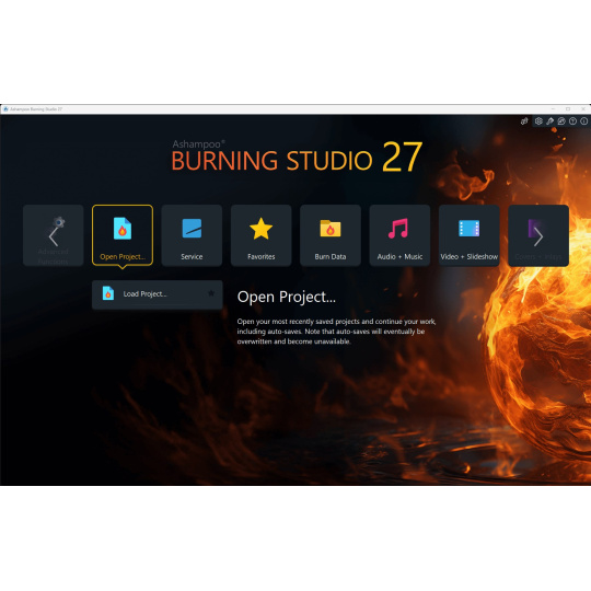 Nové Ashampoo Burning Studio 27 představuje nejpohodlnější způsob, jak bezpečně vypálit data a bez námahy kopírovat disky CD, DVD a Blu-ray. Ripujte zvukové disky a zálohujte hudbu nebo si vytvářejte vlastní hudební kompilace s vhodným obalem! Další špičkové multimediální funkce vám také umožňují vytvářet vlastní filmy a prezentace a dokonce je vypalovat na disk spolu s elegantními animovanými nabídkami. Rozlučte se se ztrátou dat, okamžitě zálohujte soubory a zapisujte důležitá data na jakýkoli typ disku s výkonnou kompresí a ochranou heslem. A nové funkce pro pohodlné používání audioknih, audiopřehrávání a podcastů zaručují vysoce kvalitní zábavu!