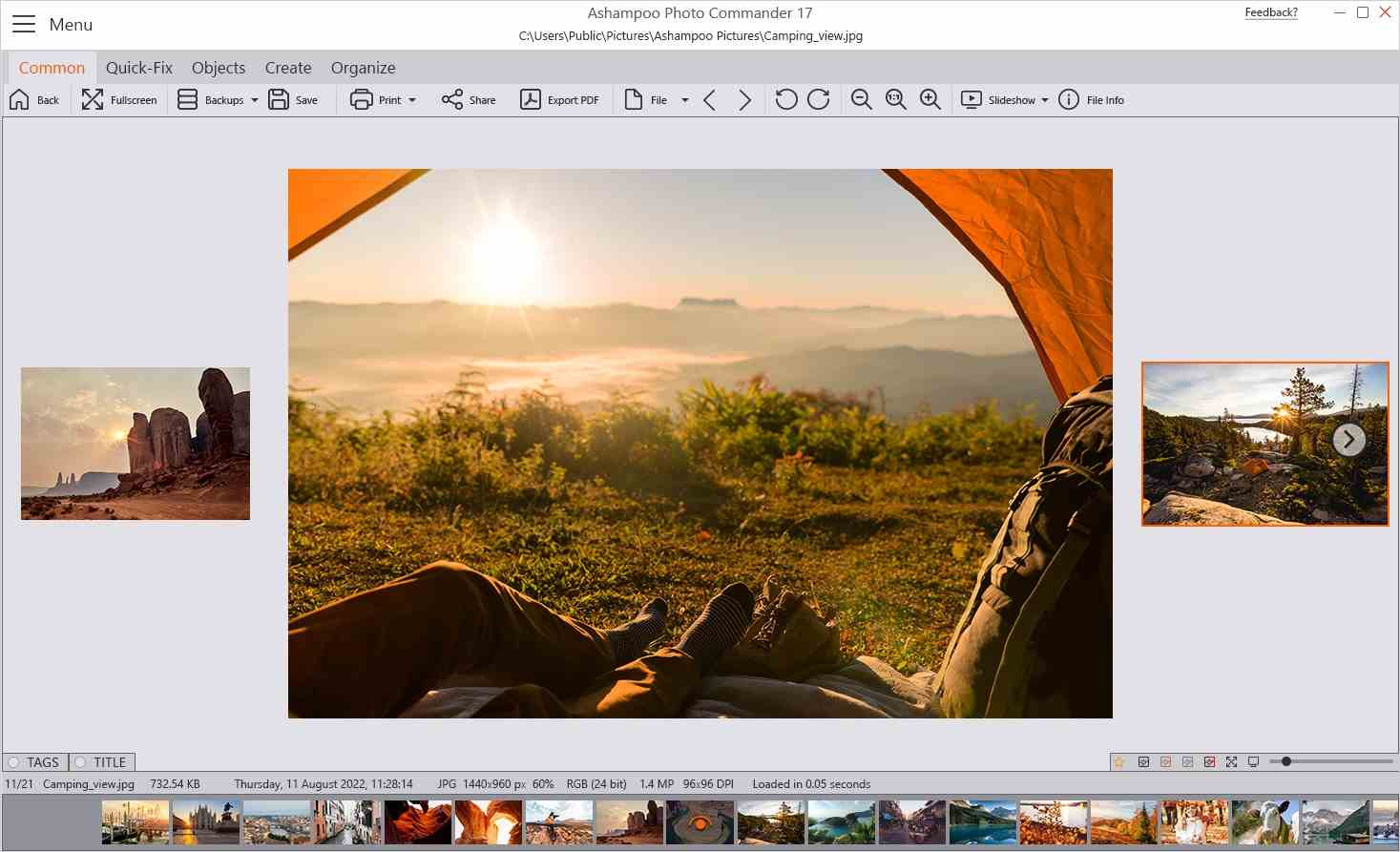 Ashampoo Photo Commander je nielen kompatibilný so systémom Windows 11, ale bol tiež úplne prepracovaný pre skutočnú natívnu 64-bitovú podporu a optimálnu správu pamäte. Je to doteraz najlepšie vyzerajúci, najrýchlejší a najstabilnejší Photo Commander. Či už upravujete jednotlivé snímky alebo celé knižnice, rozdiel pocítite okamžite!