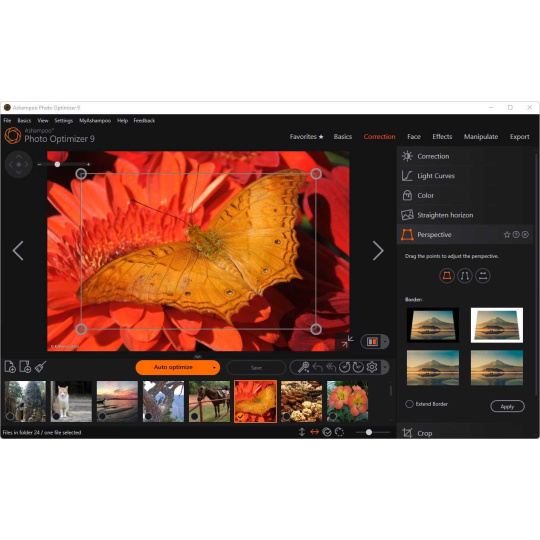 Všetci máme svoje obľúbené funkcie, na ktoré sa najviac spoliehame. Teraz už nemusíte prechádzať rôzne menu a kategórie, aby ste ich našli. Ashampoo Photo Optimizer obsahuje prispôsobiteľné menu „Obľúbené“, takže všetky svoje obľúbené funkcie môžete mať na jednom rýchlo dostupnom mieste. Potrebujete rýchlo narovnať horizont po automatickej optimalizácii, opraviť perspektívu alebo vykonať orez? Teraz môžete. Geniálne, že?