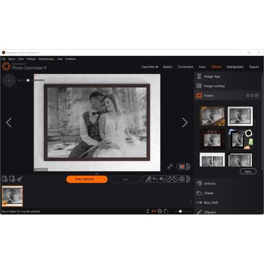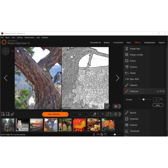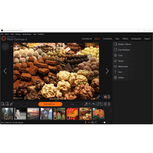 Ashampoo Photo Optimizer samozrejme obsahuje všetky bežné funkcie, ako je orezávanie, otáčanie, vodoznaky a zmäkčenie obrázkov. Ale tým to nekončí. Nebojte sa tvorivého prístupu k umeleckým efektom a elegantným návrhom rámov. Či už obnovujete neuspokojivé zábery, zvyšujete kvalitu záberov o ďalších 5 % alebo sa len bavíte, tento program je pre vás ten pravý!
