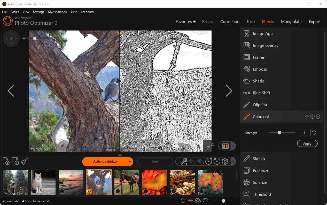 Ashampoo Photo Optimizer samozrejme obsahuje všetky bežné funkcie, ako je orezávanie, otáčanie, vodoznaky a zmäkčenie obrázkov. Ale tým to nekončí. Nebojte sa tvorivého prístupu k umeleckým efektom a elegantným návrhom rámov. Či už obnovujete neuspokojivé zábery, zvyšujete kvalitu záberov o ďalších 5 % alebo sa len bavíte, tento program je pre vás ten pravý!