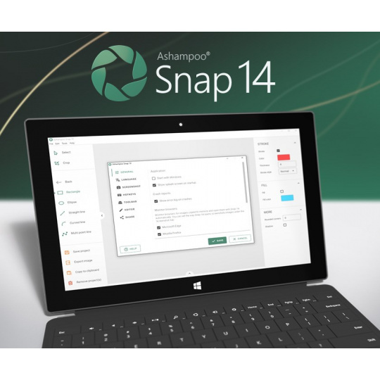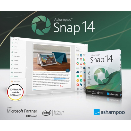 Ashampoo Snap je dokonalý nástroj na rozšírenie vašej práce v domácej kancelárii o snímky obrazovky a videá. Či už vo firme alebo v prvej línii, Snap urýchli vašu komunikáciu, zefektívni ju a urobí zmysluplnejšou. Návrhy, diskusie alebo vysvetlenia ťažia z vizuálnejšieho prístupu. Nie nadarmo hovoria "ukáž, nehovor"! Zachyťte všetko, čo vidíte na obrazovke, a vyjadrite svoje posolstvo pomocou anotácií, klipartov a efektov. Plne podporované je aj zachytávanie, úprava a zdieľanie videa. Ashampoo Snap je nástroj, ktorý posunie vašu komunikáciu na vyššiu úroveň bez náročných hardvérových požiadaviek a učenia!