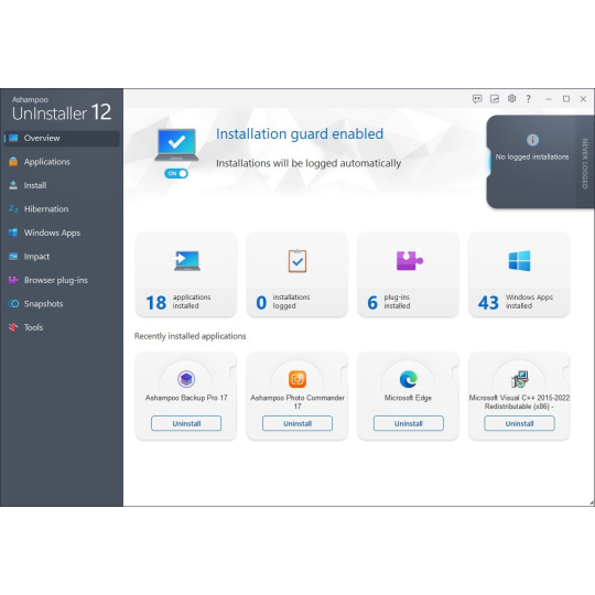 Nový Background Installation Guard v Ashampoo UnInstaller 15 vykonáva analýzu inštalácie v reálnom čase, ktorá je až 10x rýchlejšia ako predtým. Presne zisťuje začiatok a koniec inštalácie a lepšie podporuje vnorené alebo zriedkavé typy inštalácií. Či už skúšate nové programy alebo aktualizujete svoj obľúbený softvér, nášmu strážcovi nič neunikne, či už ide o menšie alebo väčšie úpravy systému. Zažite lepší výkon, presnosť a kompatibilitu!