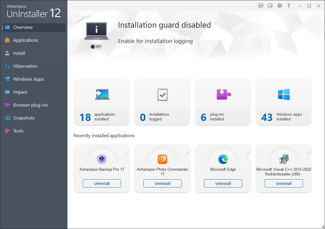 Nový Background Installation Guard v Ashampoo UnInstaller 15 vykonáva analýzu inštalácie v reálnom čase, ktorá je až 10x rýchlejšia ako predtým. Presne zisťuje začiatok a koniec inštalácie a lepšie podporuje vnorené alebo zriedkavé typy inštalácií. Či už skúšate nové programy alebo aktualizujete svoj obľúbený softvér, nášmu strážcovi nič neunikne, či už ide o menšie alebo väčšie úpravy systému. Zažite lepší výkon, presnosť a kompatibilitu!
