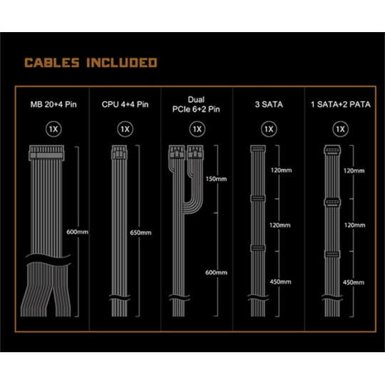 | DVOJITÝ PCIe 6+2pin Konektor | 2x / 2x (600 + 150 mm) |