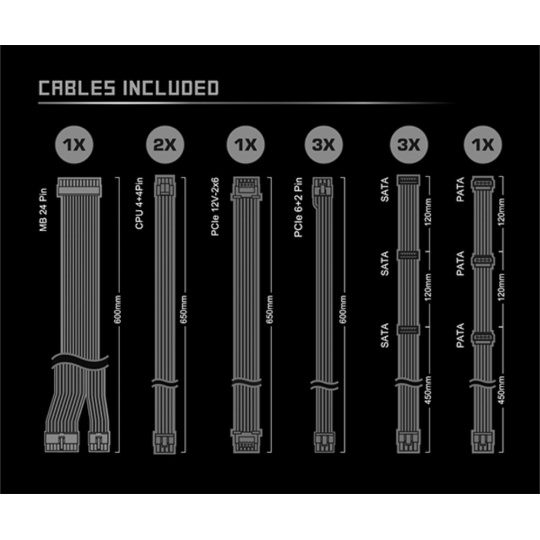 | PCIe 6+2pin Konektor | 3x / 1x (600 mm) |