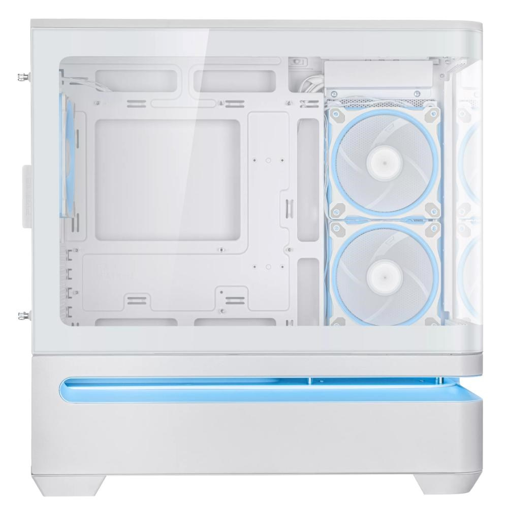 - Zakrivený panel zo tvrdeného skla plynule prechádza z prednej strany na bočnú a ponúka panoramatický výhľad na komponenty z takmer každého uhla.