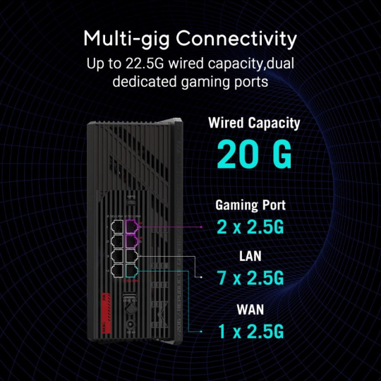 ASUS Herní Router ROG Strix GS-BE18000, 3-pásmový WiFi7 Router, 1x WAN, 7x LAN, AiMesh