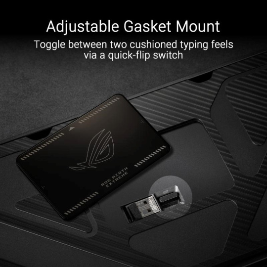 ROG Azoth Extreme je prispôsobiteľná 75% herná klávesnica s prémiovým šasím z hliníkovej zliatiny a kovovým rámom. Vyznačuje sa rýchlosťou hlásenia 8000 Hz s ROG Polling Rate Booster a viac než 1600 hodín výdrže batérie v bezdrôtovom režime ROG SpeedNova 2,4 GHz. Vylepšený OLED dotykový displej a trojpólový knoflík umožňujú sledovanie systému a rýchle nastavenie. Polohovacia doska z uhlíkovej ocele zabezpečuje ostrý zvuk pri písaní, zatiaľ čo tri tlmiace vrstvy absorbujú vibrácie. Nastaviteľný držiak tesnenia s pádly spínača ponúka dve možnosti písania.