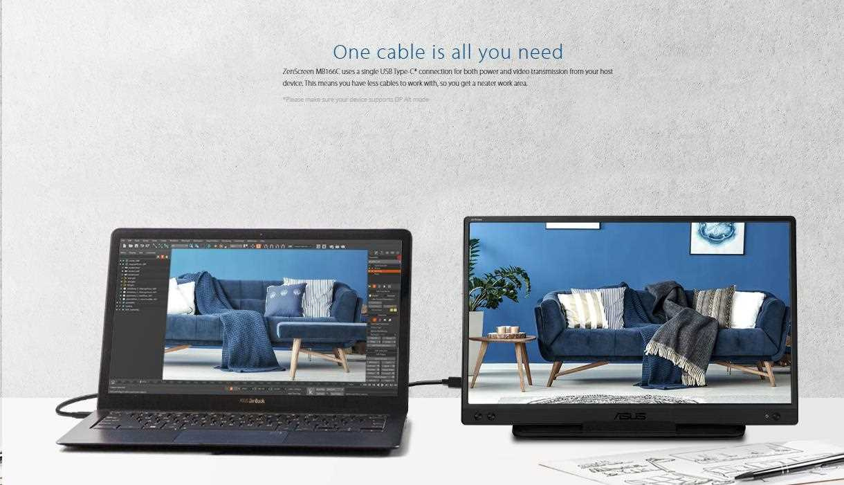 ASUS ZenScreen MB166C Prenosný USB monitor - 15,6 palca, Full HD, IPS, USB Type-C, Flicker Free, Filter modrého svetla, povrch proti oslneniu