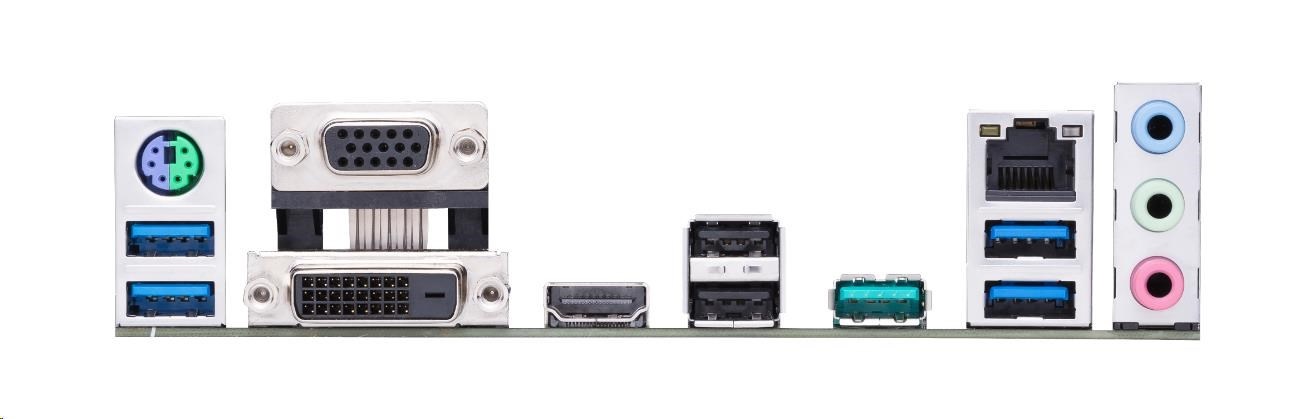 | Zadné I/O porty | 1 x kombinovaný(é) port(y) klávesnica/myš PS/2 1 x DVI-D 1 x D-Sub 1 x HDMI 1 x port(y) LAN (RJ45) 1 x USB 3.2 Gen 2 (teal blue) (1 x Type-A) 4 x USB 3.2 Gen 1 (modrý) Type-A 2 x USB 2.0 3 x audio konektor(y) |