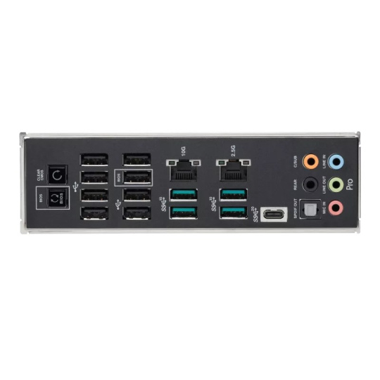 1 x USB 3.2 Gen 2x2 port(y) (1 x USB Type-C®) 4 x USB 3.2 Gen 2 port(y) (4 x Type-A) 8 x USB 2.0 port(y) (8 x Type-A) 1 x Marvell® AQtion 10Gb Ethernet port 1 x Intel® 2.5Gb Ethernet port 5 x zvukové redukcie 1 x optický S/PDIF výstup 1 x tlačidlo BIOS FlashBack™ 1 x tlačidlo na vymazanie CMOS