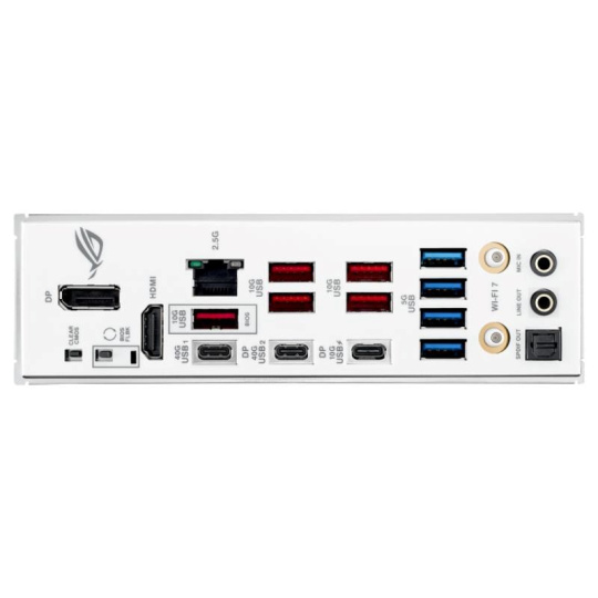 ROG Strix X870-A vyniká svojou výraznou bielou PCB, ktorá ponúka čerstvý a moderný vzhľad, ktorý plynule dopĺňa takmer každý systém. Zodpovedajúce kovové chladiče zvyšujú jej čistý, ostrý vzhľad, zatiaľ čo subtilné RGB podsvietenie na kryte I/O vám umožní buď zachovať elegantný, nenápadný vzhľad alebo predviesť odvážny, luminousný dizajn.