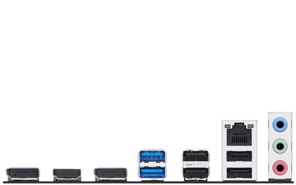 Predný USB (celkovo 5 portov): 1 x USB 5Gbps konektor (Typ-C®), 1 x USB 5Gbps header (2 porty), 1 x USB 2.0 header (2 porty)