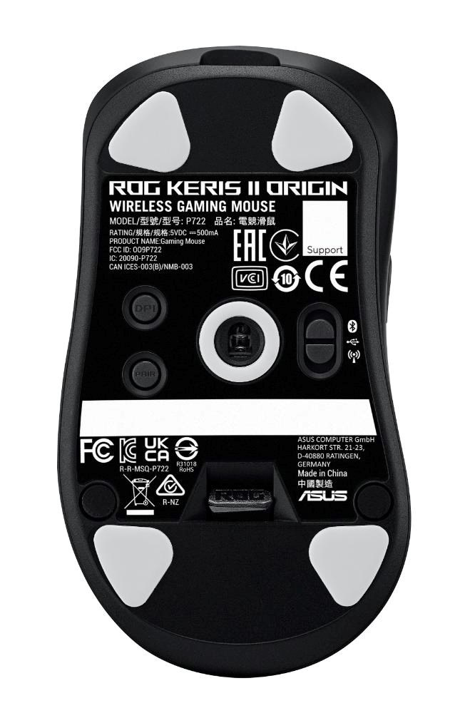 ROG Keris II Origin je 65gramová ergonomická herná myš s tvarom testovaným profesionálnymi hráčmi FPS. Myš je vybavená živým trojzónovým osvetlením RGB a optickým senzorom ROG AimPoint Pro s rozlíšením 42 000 dpi, spínačmi ROG Micro Switches II a bezdrôtovou technológiou ROG SpeedNova. Keris II Origin je tiež kompatibilný s ROG Polling Rate Booster, ktorý podporuje bezdrôtovú frekvenciu dotazovania 8000 Hz.