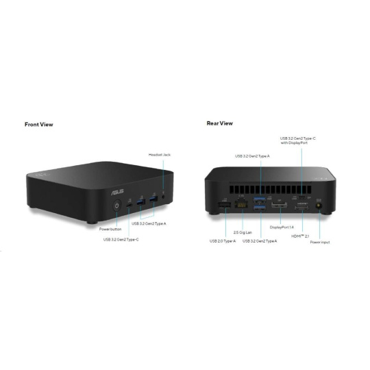 ASUS NUC 14 Essential RNUC14MNK3500002/N355 Procesor/DDR5-4800 SODIMM/USB-A,C/M.2 2280/Wi-Fi/LAN/EU Napájecí kabel