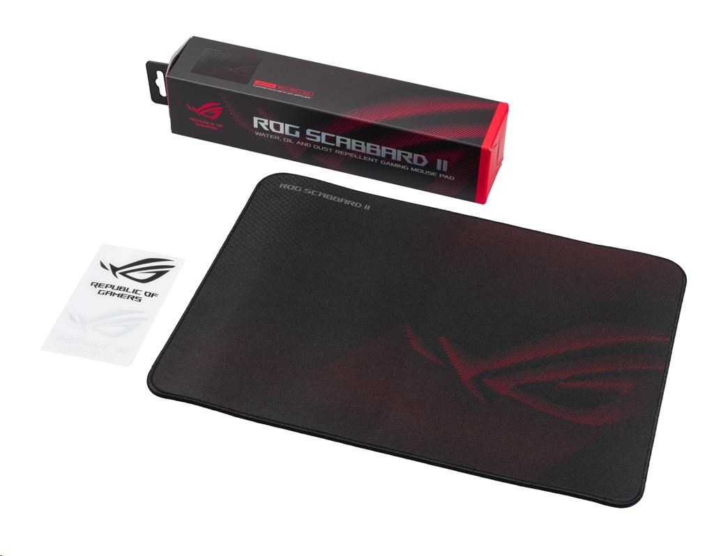 | Obsah | 1 x herná podložka pod myš ROG SCABBARD II 1 x nálepka s logom ROG |