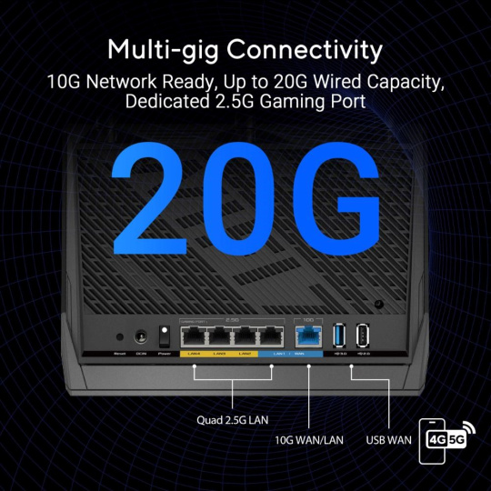 ASUS Router RT-BE86U, Herní WiFi7 Router, AiMesh, 2xWAN, 3xLAN, 1xUSB 3.2